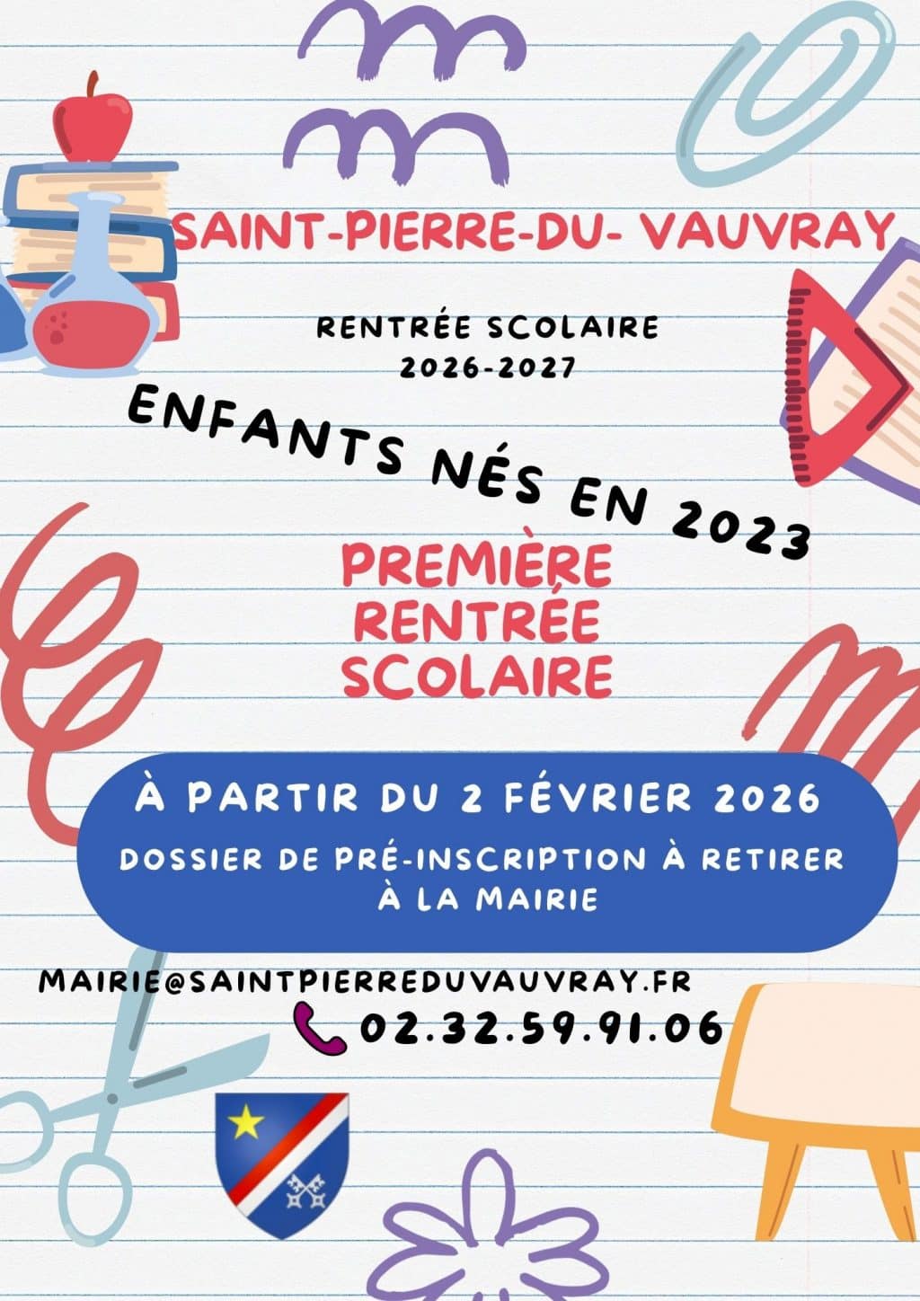Read moreInscription des enfants nés en 2023 à l’école de Saint-Pierre du Vauvray (27430)